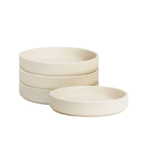 A unique cream clay with an oatmeal fleck and modern profile, make this hospitality grade collection perfect for showing-off your culinary creations. Stacking is a breeze. Microwave and dishwasher safe.