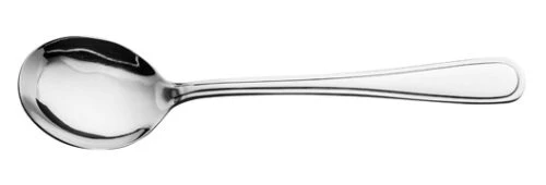 Shapely and substanial contemporary stainless steel flatware has a mirror polished finish.