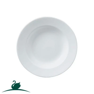 A deep concave plate perfect for serving of soup.