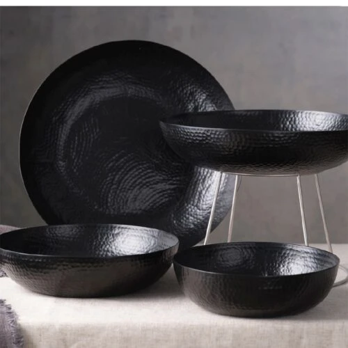 The subtle indentations of the hammered finish add a distinctive and artistic touch, creating a visually appealing texture. This finish enhances the durability, making them more resistant to wear and tear.
